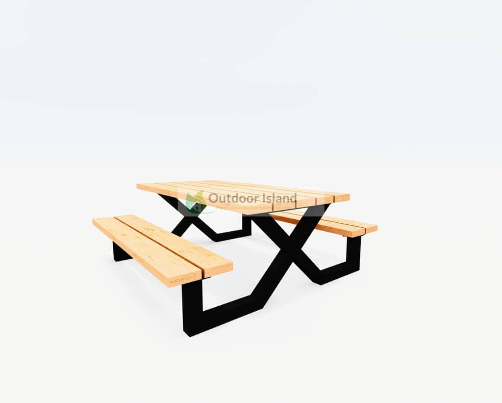Robuuste picknicktafel die gemaakt is van een matzwart gepoedercoat ijzer frame met een fijne korrel structuur. Deze tafel is afgewerkt met geschaafde Douglas balken. Dit materiaal heeft sterke eigenschappen en heeft onbehandeld een zeer lange levensduur. Door de combinatie van ijzer met Douglas hout krijgt u een Robuust uiterlijk.